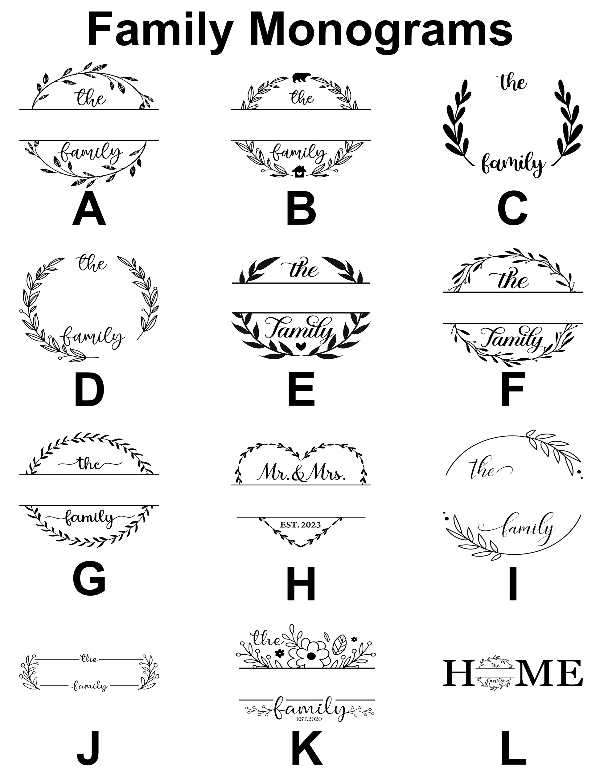 - Family Monogram + Add Text (family name)